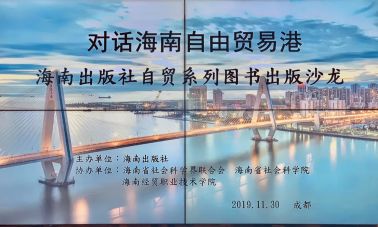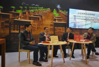《走向中国特色自由贸易港》《海南自由贸易港建设一百问》《海南自由贸易港建设知识读本》和《打好“健康海南”这张王牌——实施健康中国战略与海南健康岛建设研究》四本“自贸系列图书”,于首届天府书展精彩亮相。新书推介会以沙龙座谈的形式开展,海南出版社副社长、副总经理欧大伟发表了致辞,四川省社科院副院长盛毅、海南省社会科学界联合会原副主席兼省社会科学院原副院长祁亚辉、海南经贸职业技术学院教授王纪忠以围绕加快推进海南自由贸易港建设这一主题,就成都自贸试验区在制度创新方面有何经验可借鉴、如何以医疗健康服务业开放为重点打好“健康海南”这张王牌、如何利用媒体融合做好海南自贸建设图书出版工作等话题展开对话,海南大学政治与公共管理学院研究员夏锋主持对话。